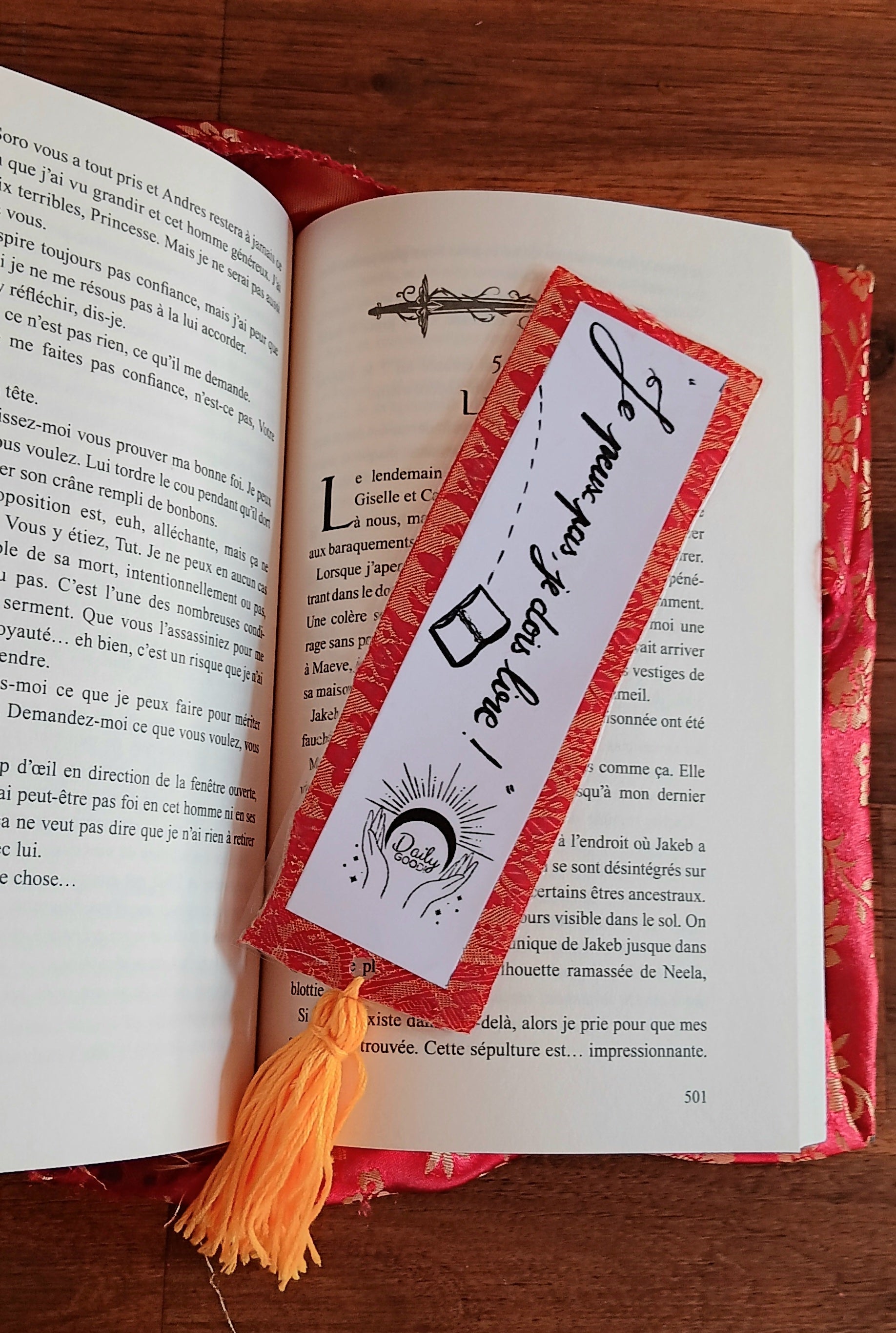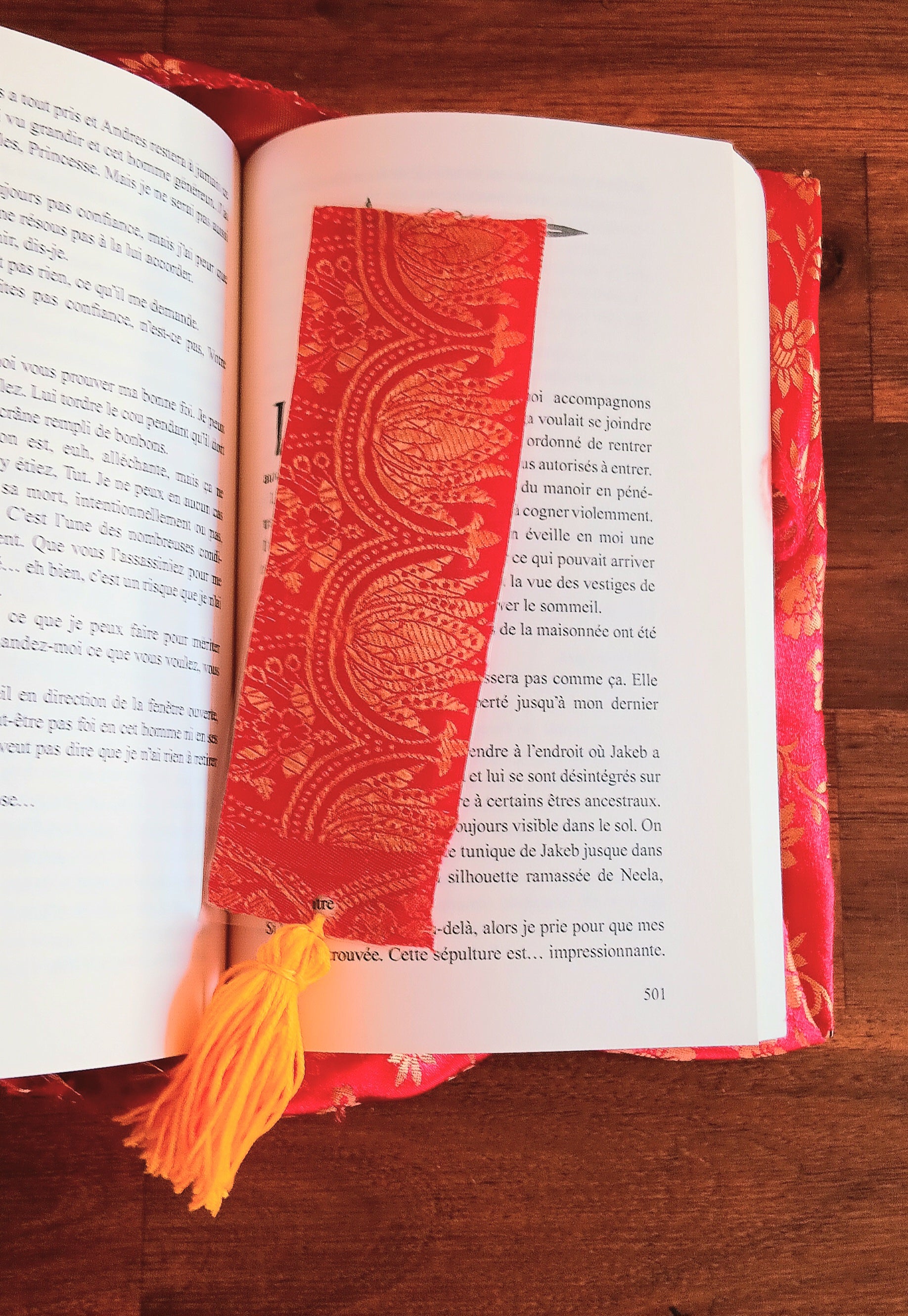 Ce marque-page allie élégance et personnalisation. Une face est confectionnée en tissu saree, offrant un style unique, tandis que l’autre face blanche, plastifiée, peut accueillir un message personnalisé selon votre souhait. Un pompon délicat orne le tout pour une finition raffinée.